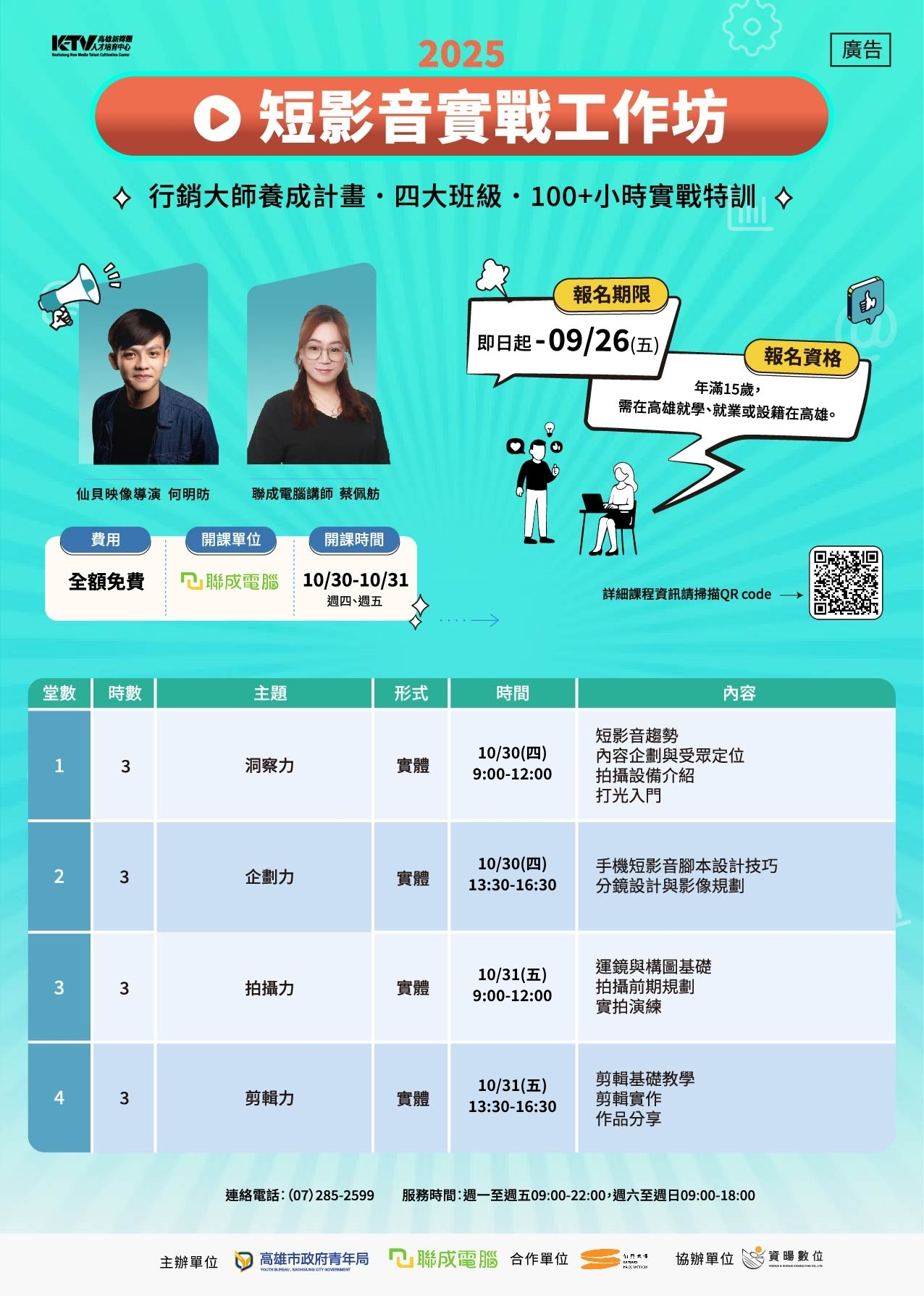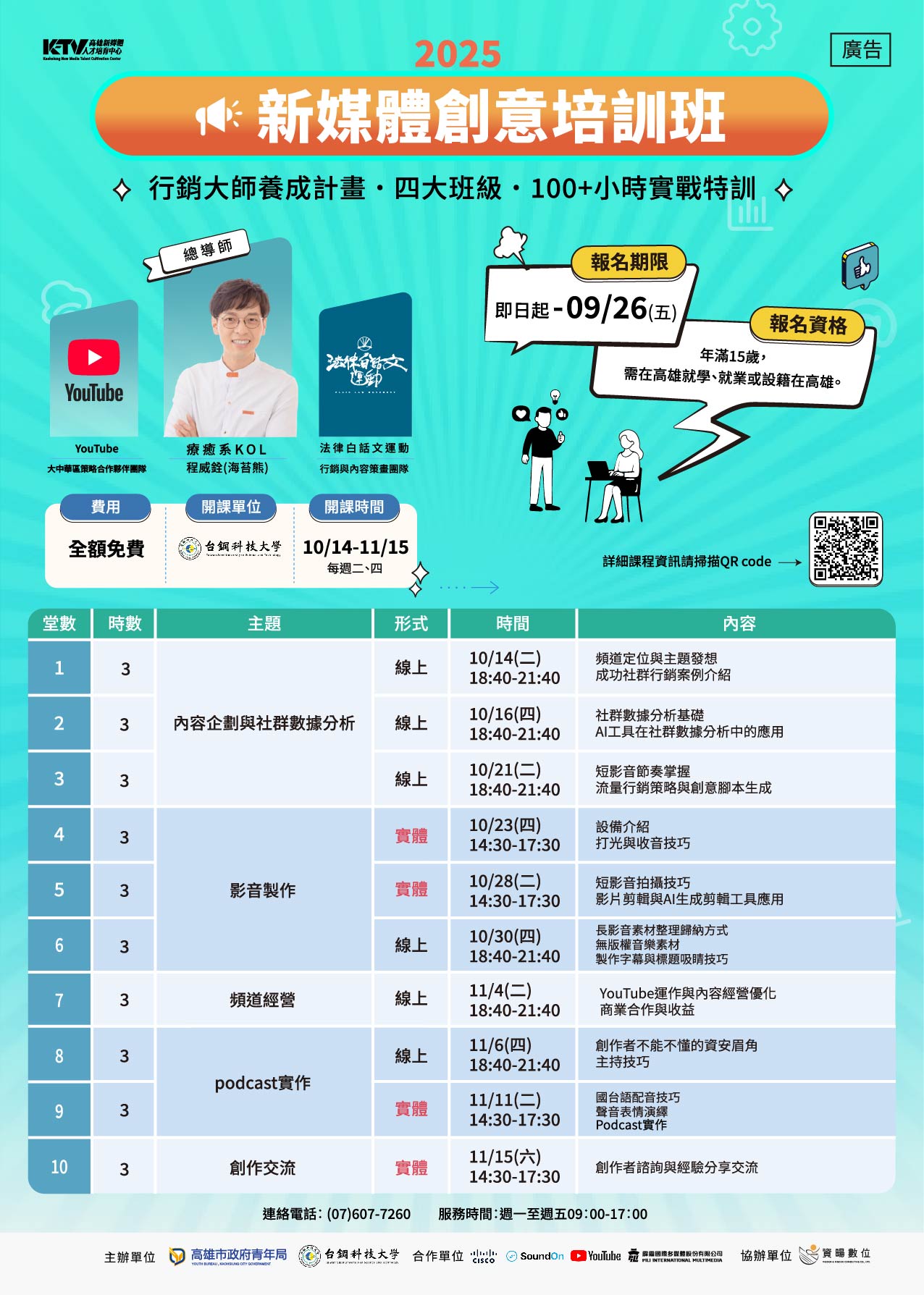 聯繫方式:K-TV高雄新媒體人才培育中心