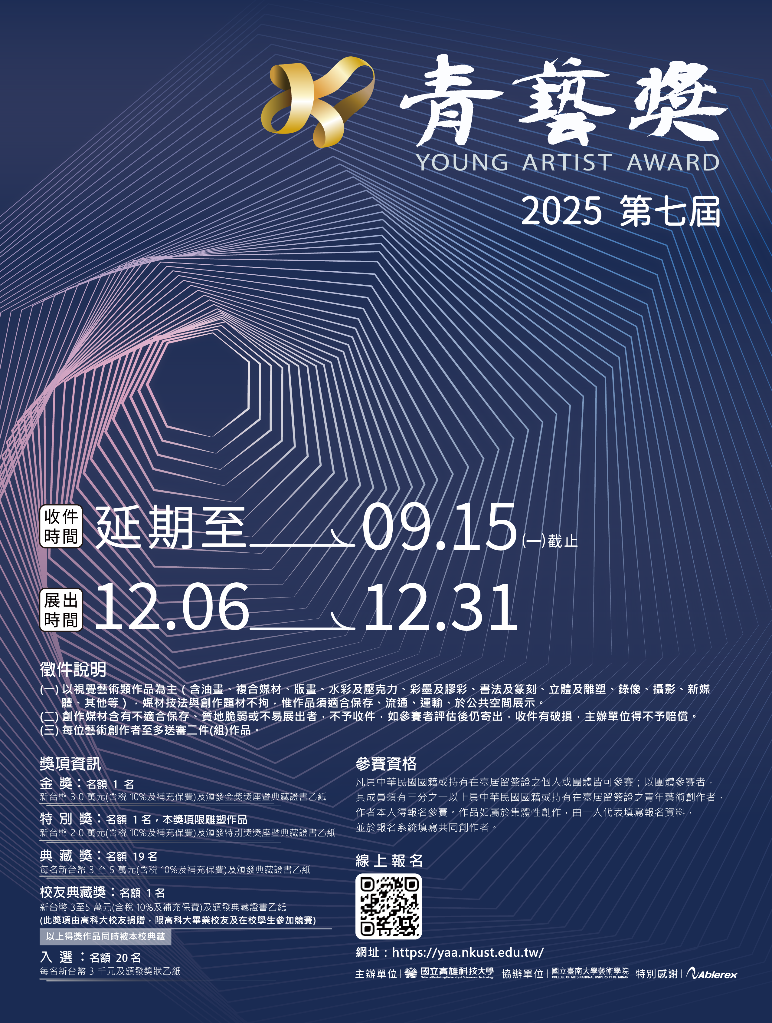 國立高雄科技大學主辦之「2025高科大青藝獎典藏徵件比賽」延長徵件 歡迎同學踴躍報名參加