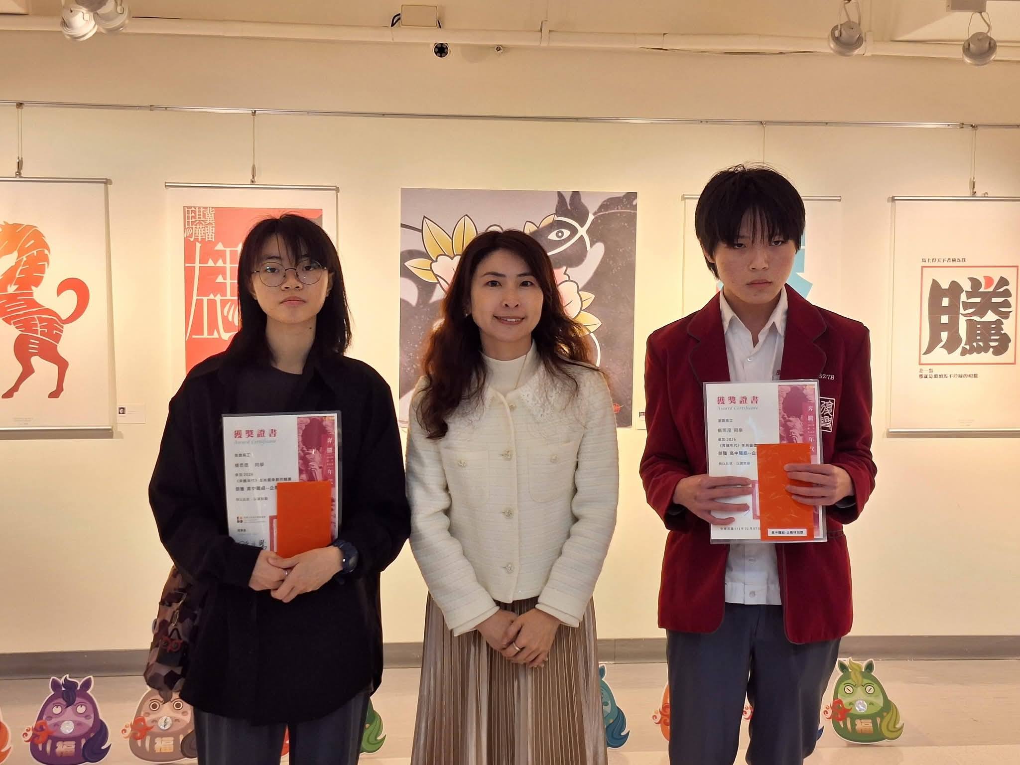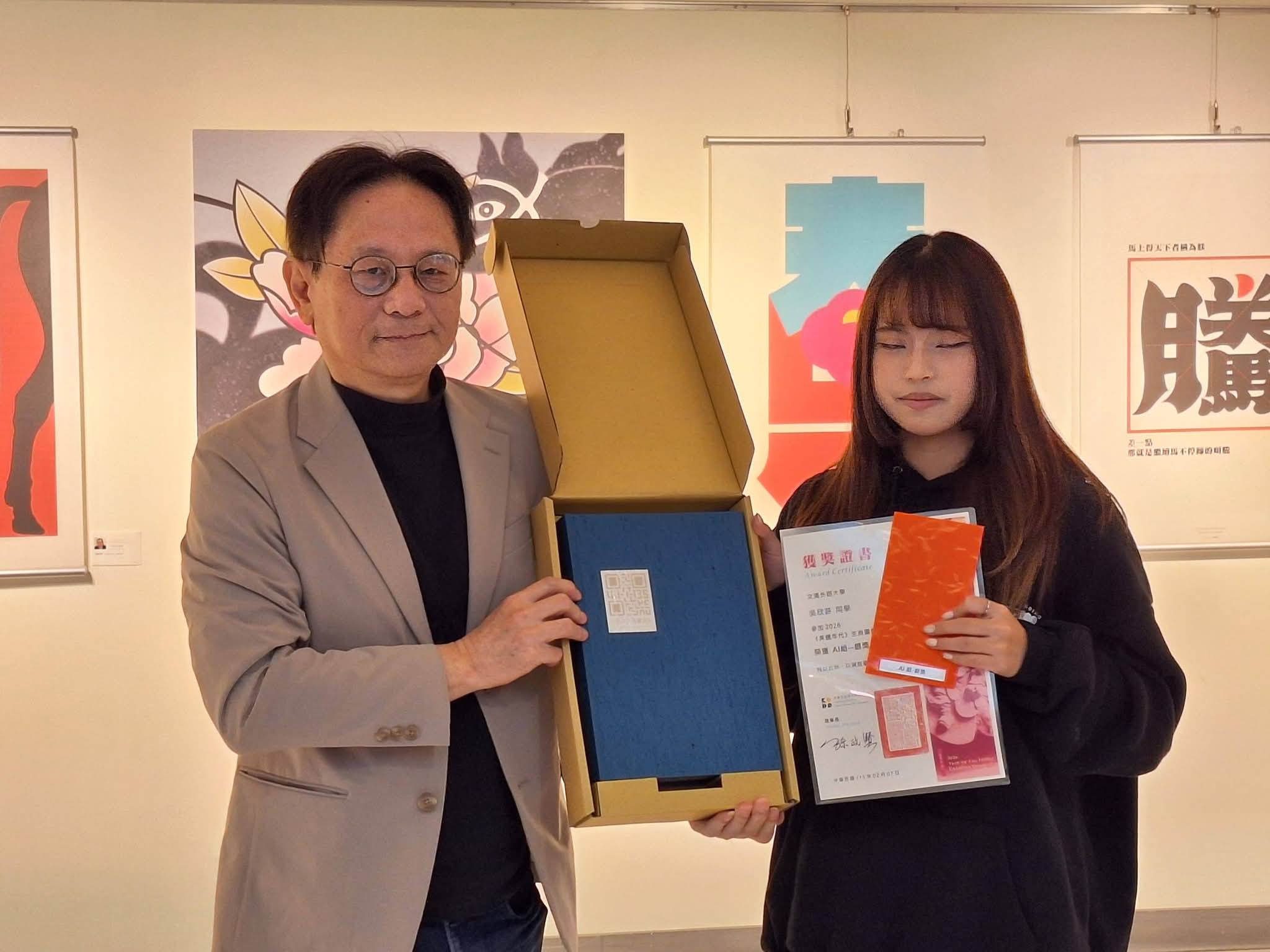 由本系林悅棋老師帶領本系學生參加高雄文化設計發展協會主辦之2026「奔騰年代」生肖圖像創作競賽(AI組),吳欣芸榮獲銀獎,林采薇、沈天恩、涂沛安榮獲優選。