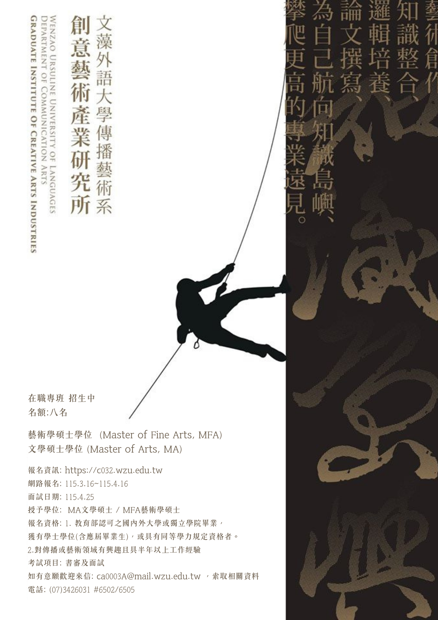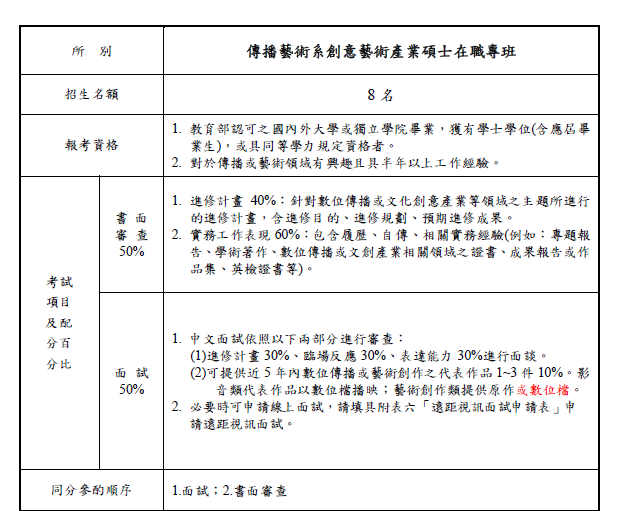 | 文藻外語大學 傳播藝術系創意藝術產業碩士在職專班 114年招生說明 |